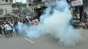 অনলাইন ডেস্ক : সারাদেশে কোটা আন্দোলনকারীদের ‘গুম, খুন ও মিথ্যা মামলায় জড়ানো হয়েছে দাবি করে নগরের চেরাগী মোড় এলাকায় বিক্ষোভ সমাবেশ করেছেন আন্দোলনকারীরা। এসময় পুলিশ আন্দোলনকারীদের সাউন্ড গ্রেনেড-টিয়ার শেল ছুড়ে ও লাঠিপেটা করে ছত্রভঙ্গ করে দেয়।