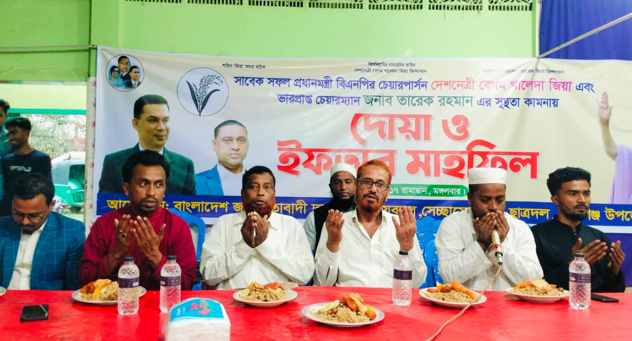 সুনামগঞ্জ জেলা প্রতিনিধি : বিএনপির চেয়ারপার্সন ও সাবেক প্রধানমন্ত্রী বেগম খালেদা জিয়ার ও বিএনপির ভারপ্রাপ্ত চেয়ারম্যান তারেক রহমানের সুস্থতা কামনায় আসন্ন জাতীয় সংসদ নির্বাচনে সুনামগঞ্জ-৩ আসনে (শান্তিগঞ্জ-জগন্নাথপুর) ধানের শীষের মনোনয়ন প্রত্যাশী যুক্তরাজ্য বিএনপির সহ-সভাপতি এম এ সাত্তারের উদ্যোগে ইফতার ও দোয়া মাহফিল অনুষ্ঠিত হয়েছে।