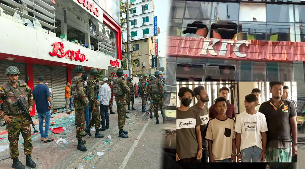পুলিশ জানায়, সোমবার বিভিন্ন প্রতিষ্ঠানে ভাঙচুর ও লুটপাটের পর অনলাইনে জুতা বিক্রির একটি বিজ্ঞাপন পুলিশের নজরে আসে। পরে পুলিশ ক্রেতা সেজে ওই পোস্টদাতাকে গ্রেপ্তার করে লুট হওয়া কিছু জুতা উদ্ধার করে। এ ছাড়াও লুটপাটের ভিডিও ও সিসি ক্যামেরার ফুটেজ দেখে বিভিন্ন স্থানে অভিযান চালিয়ে ১৭ জনকে আটক করা হয়।