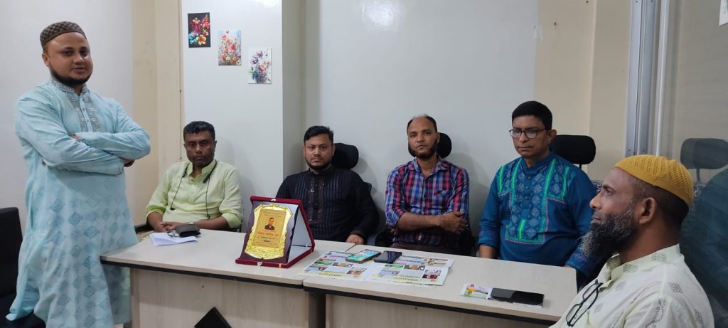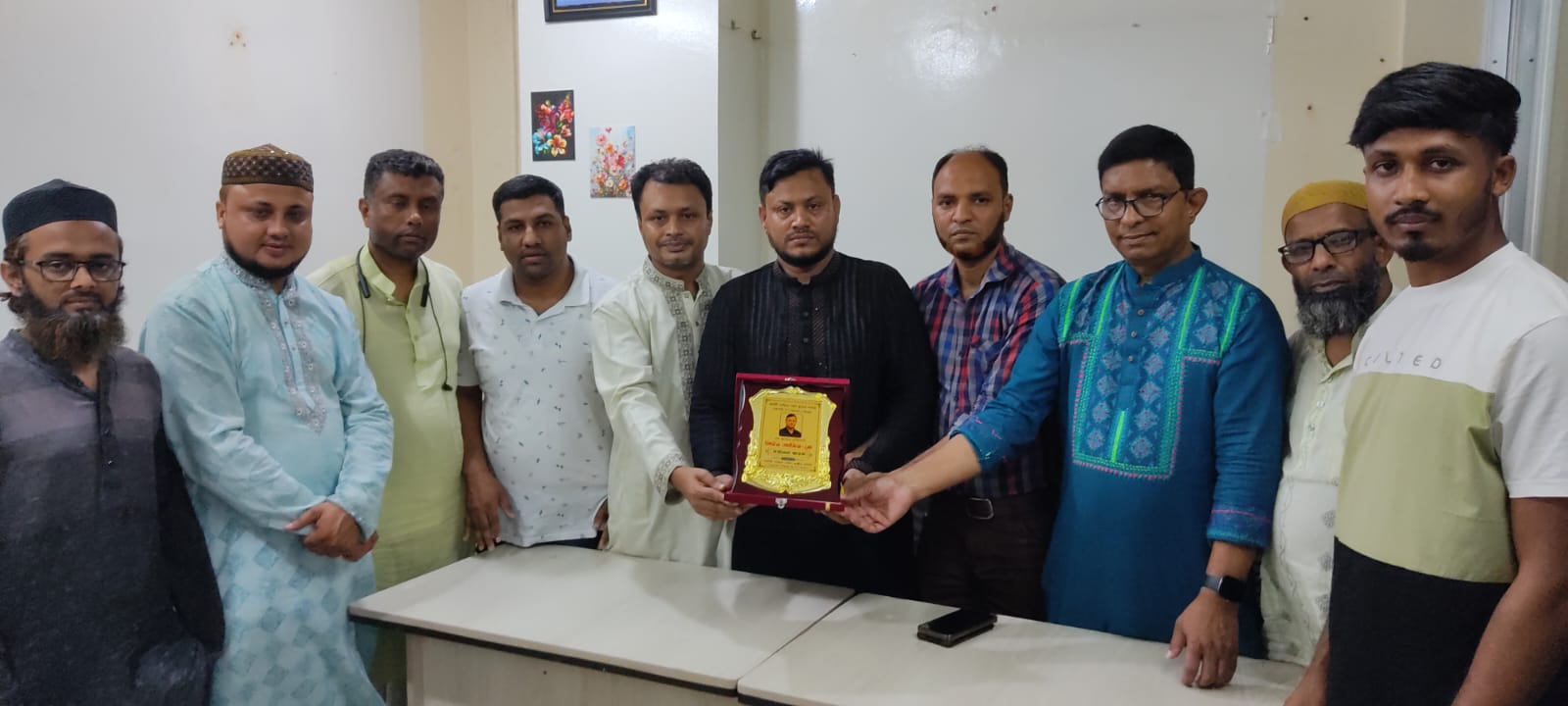 অনুষ্টানে সংবর্ধিত অতিথি লিটন আমিন কে সম্মাননা ক্রেস্ট প্রদান করেন অতিথিবৃন্দ।