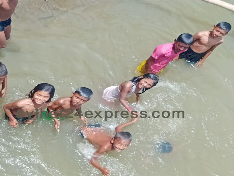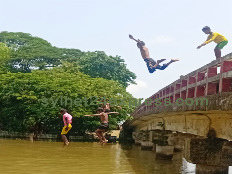 একদল শিশু কিশোরের দুরন্তপনা। তারা পানিতে লাফিয়ে পড়ছে আর উঠছে। কেউ কেউ আবার সাঁতার কাটছে। তবে এসব শিশুদের অনেকেই একেবারে উদম গায়ে। কারো মধ্যে লজ্জা বা জড়তা কিছুই নেই। যেন তারা স্বর্গীয় আনন্দে মেতে আছে।