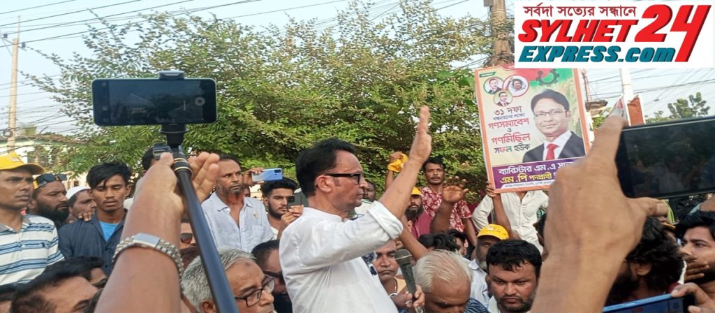 শনিবার বেলা তিনটায় দক্ষিণ সুরমার সিলেট-ঢাকা মহাসড়কের চন্ডিপুল পয়েন্টে ঐতিহাসিক এই গণ-মি’ছিলে নেতাকর্মীদের ঢল নামে।